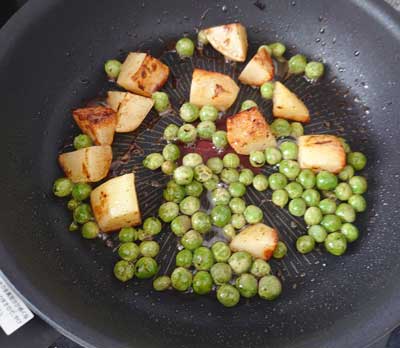 ②じゃがいもとグリンピースを茹でる or 炒める